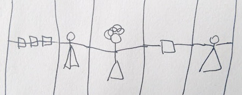 Megyek az utamon, amelyet sok más út is kísér. Ezt térben képzelem el, de azt túl bonyolult lenne lerajzolni, ezért leegyszerűsítettem a síkba.