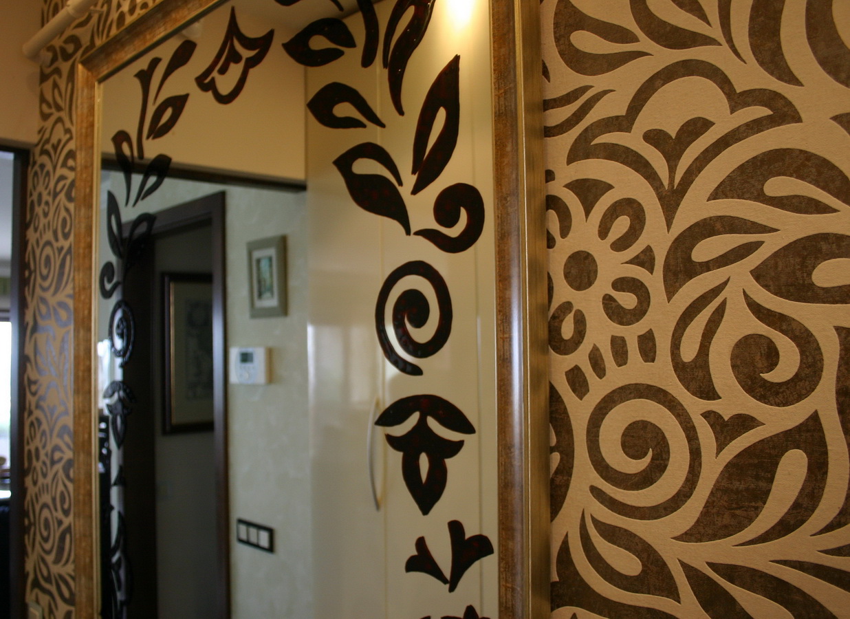 Előszobai tükör a tapétához komponálva - Üvegfestészet
